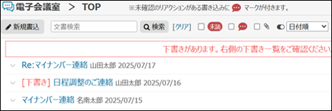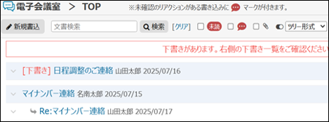 チャット形式から返答を書き込んだ場合、タイトルは「Re:親文書タイトル」となります。