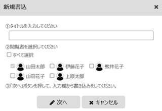 新しい文書を作成します。クリックすると、タイトルと閲覧者を設定する画面が表示されます。