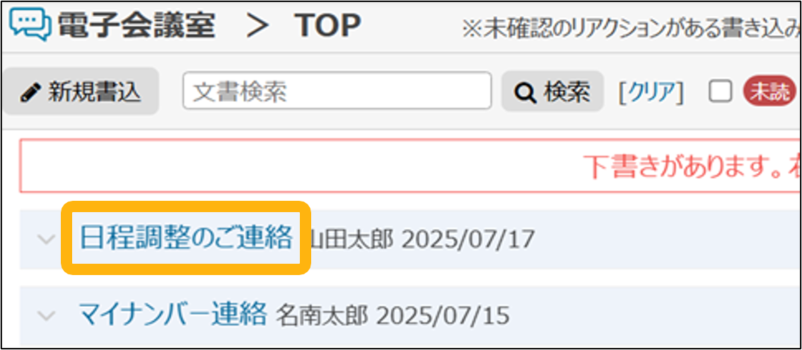 下書き文書は、作成した本人のみ閲覧できます。