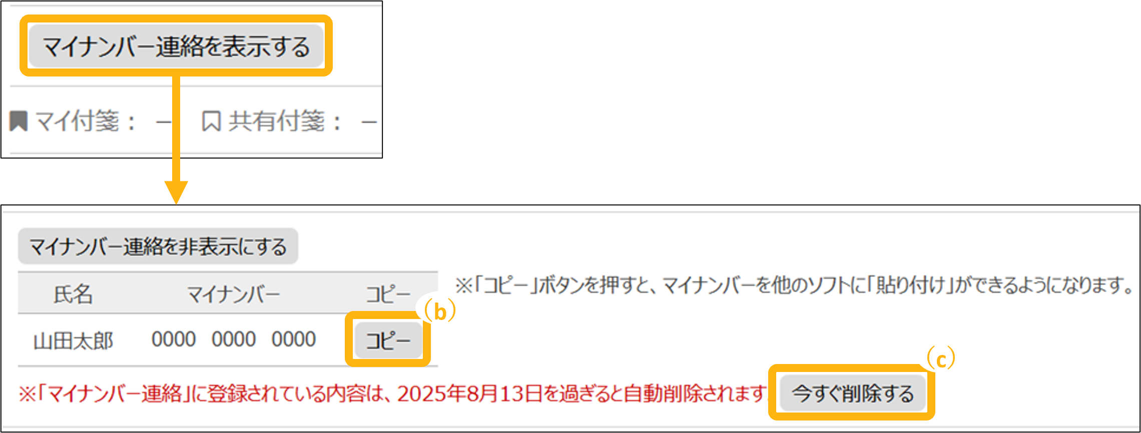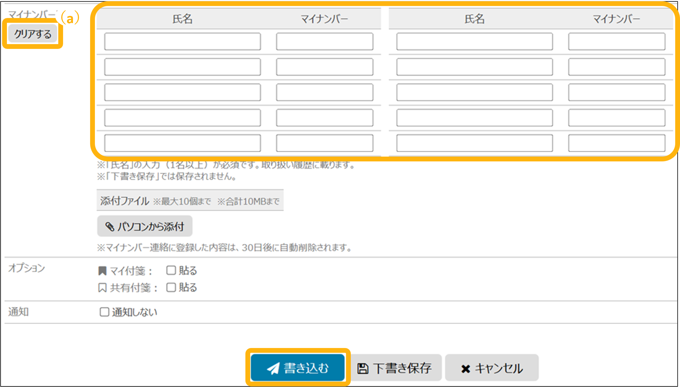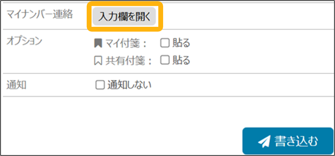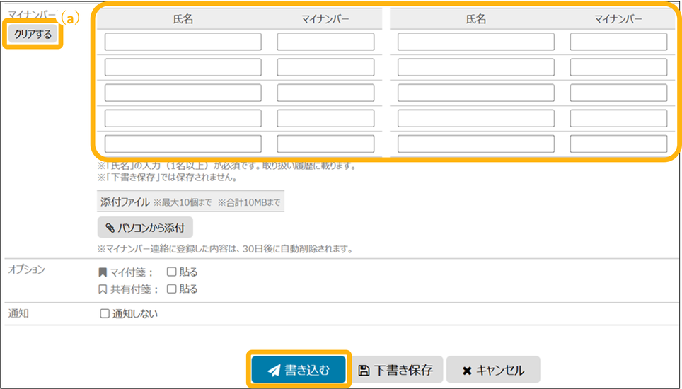 ④氏名とマイナンバーを入力し、「書き込む」をクリック