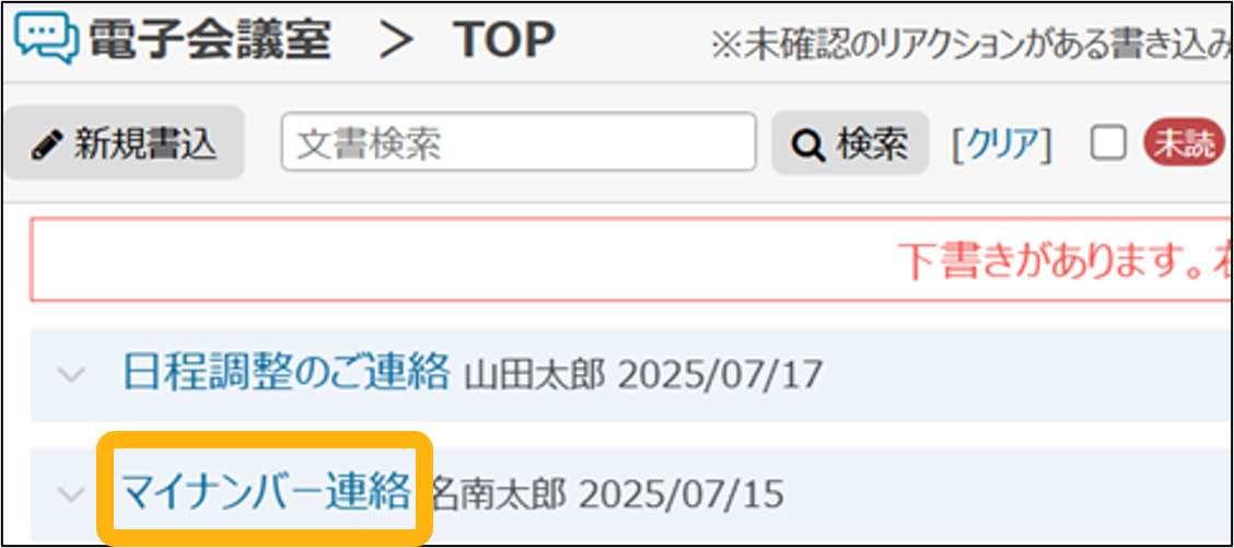 ※文書が削除された場合、履歴は書き込んだ本人のみ確認できます。