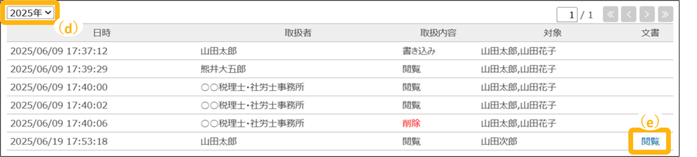 ※提供元の事務所が閲覧・削除をした場合、取扱者には担当者名は表示されず、事務所名が表示されます。