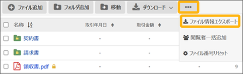 ➂「…」をクリックし、「ファイル情報エクスポート」をクリック