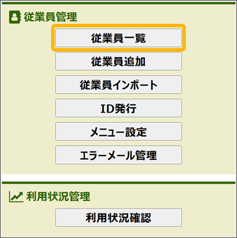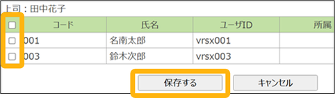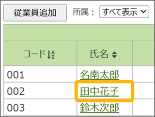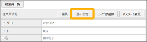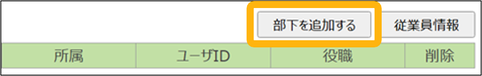 従業員マスタ管理 従業員マスタ管理マニュアル 目次 TOP 従業員マスタ管理マニュアル 初期設定 従業員登録 ID発行・メニュー設定 従業員管理 従業員情報の確認・修正 部下設定 パスワード変更 従業員IDの削除 従業員追加・ID発行 メニュー設定 エラーメール管理 利用状況確認 部下設定 部下設定ができます。 勤怠管理を利用する場合、上司は部下の申請・出勤簿の承認ができます。 ①「従業員マスタ管理」をクリック ②「従業員一覧」をクリック ③上司にあたる従業員の氏名をクリック ④「部下設定」をクリック ⑤「部下を追加する」をクリック ⑥部下にあたる従業員を選択し、「保存する」をクリック 部下設定が完了しました。 このページを印刷する