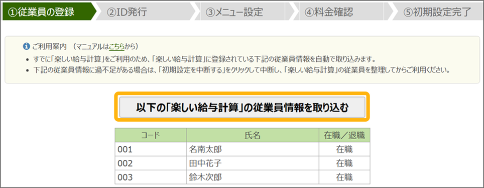 楽しい給与計算に登録されている従業員情報を取り込むことができます。