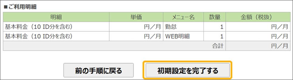 ③料金を確認し、「初期設定を完了する」をクリック