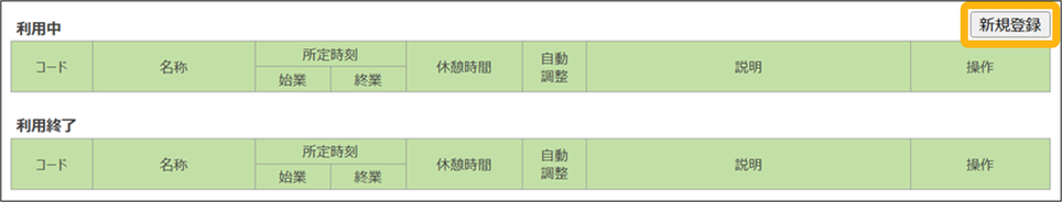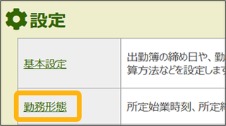 勤務形態では、所定の始業・終業時刻や休憩時間等を設定します。