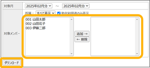 勤怠管理 管理者編 目次 管理者編 TOP 勤怠管理マニュアル 管理者編 初期設定 基本設定 勤務形態 曜日別の勤務形態 従業員別設定 労働時間集計設定 年間カレンダー 有休付与管理 有休付与設定 有休付与管理(有休付与) 有休付与管理の仕様 共用端末打刻設定 管理 時間外労働管理/画面紹介 有休取得管理/画面紹介 勤務実績ダウンロード 出勤簿ダウンロード 有休管理簿印刷ツールのダウンロード 出勤簿ダウンロード 出勤簿をダウンロードできます。 ①「勤怠」をクリック ②「その他のメニュー」をクリック ③「出勤簿」をクリック ④従業員を選択し、「追加→」をクリック ⑤ダウンロードをクリック 出勤簿ダウンロードが完了しました。 このページを印刷する