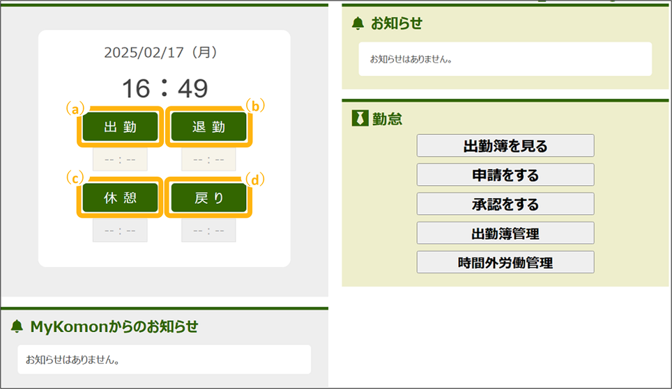 「出勤」…1日1回しか打刻できません。退勤が打刻された場合も、出勤の打刻はできなくなります。