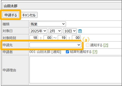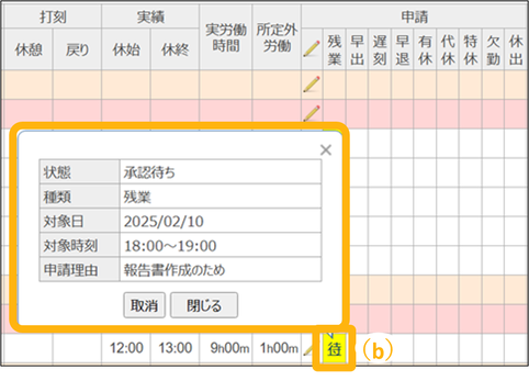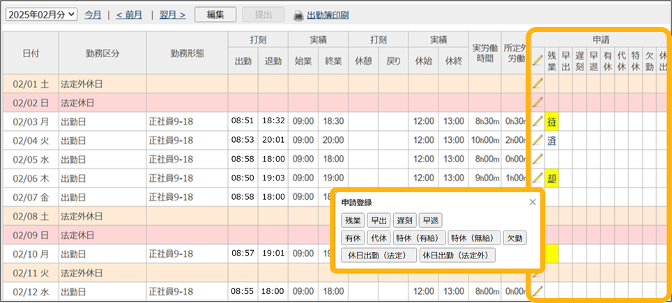 ②申請欄のえんぴつマークまたは、黄色のマスをクリック