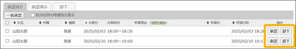 ※「却下」をクリックした時のみ吹出しが表示され、却下理由の登録ができます。