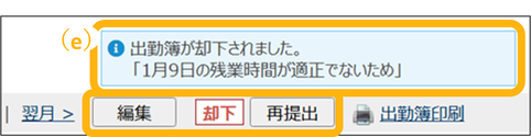 ※締日前に出勤簿を提出した場合、提出後の出勤簿に打刻をすると自動で却下されます。