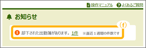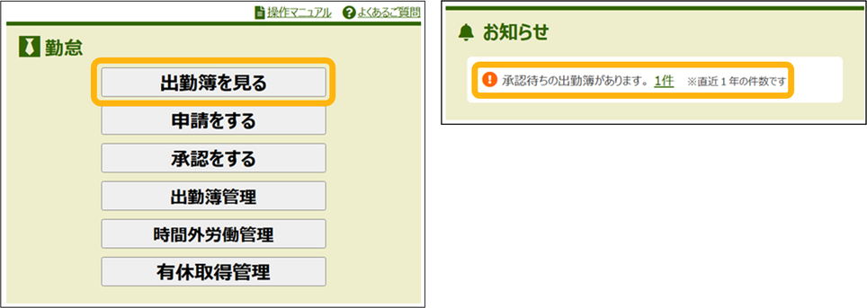 ※管理者でない従業員でも部下設定されている場合は、部下の出勤簿を確認し、承認・却下できます。
