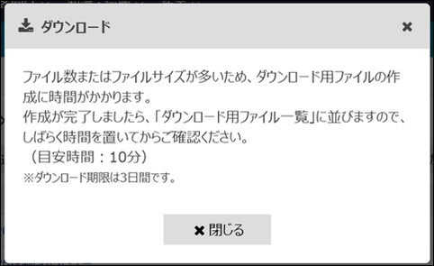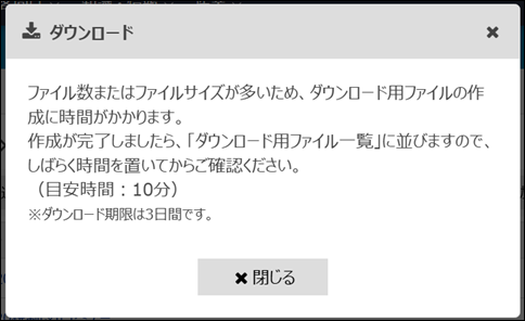※一度にダウンロードできるファイルは1,000件まで、容量は500MBまでです。
