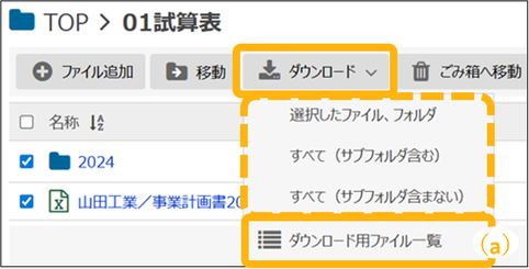 表示されているファイル、フォルダをすべてダウンロードできます。