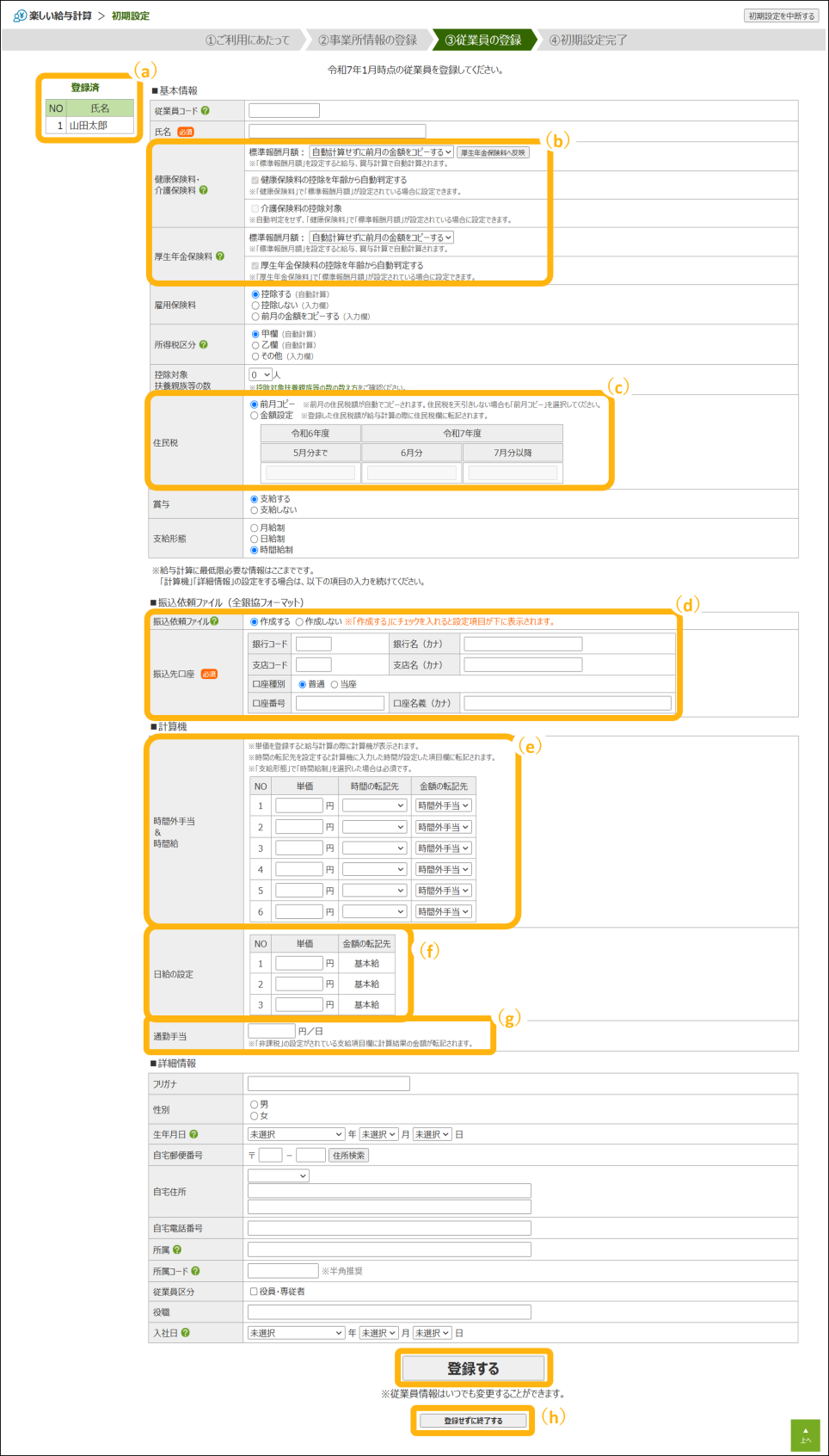 従業員の登録画面へ進みますので、1人ずつ必要な情報を登録してください。