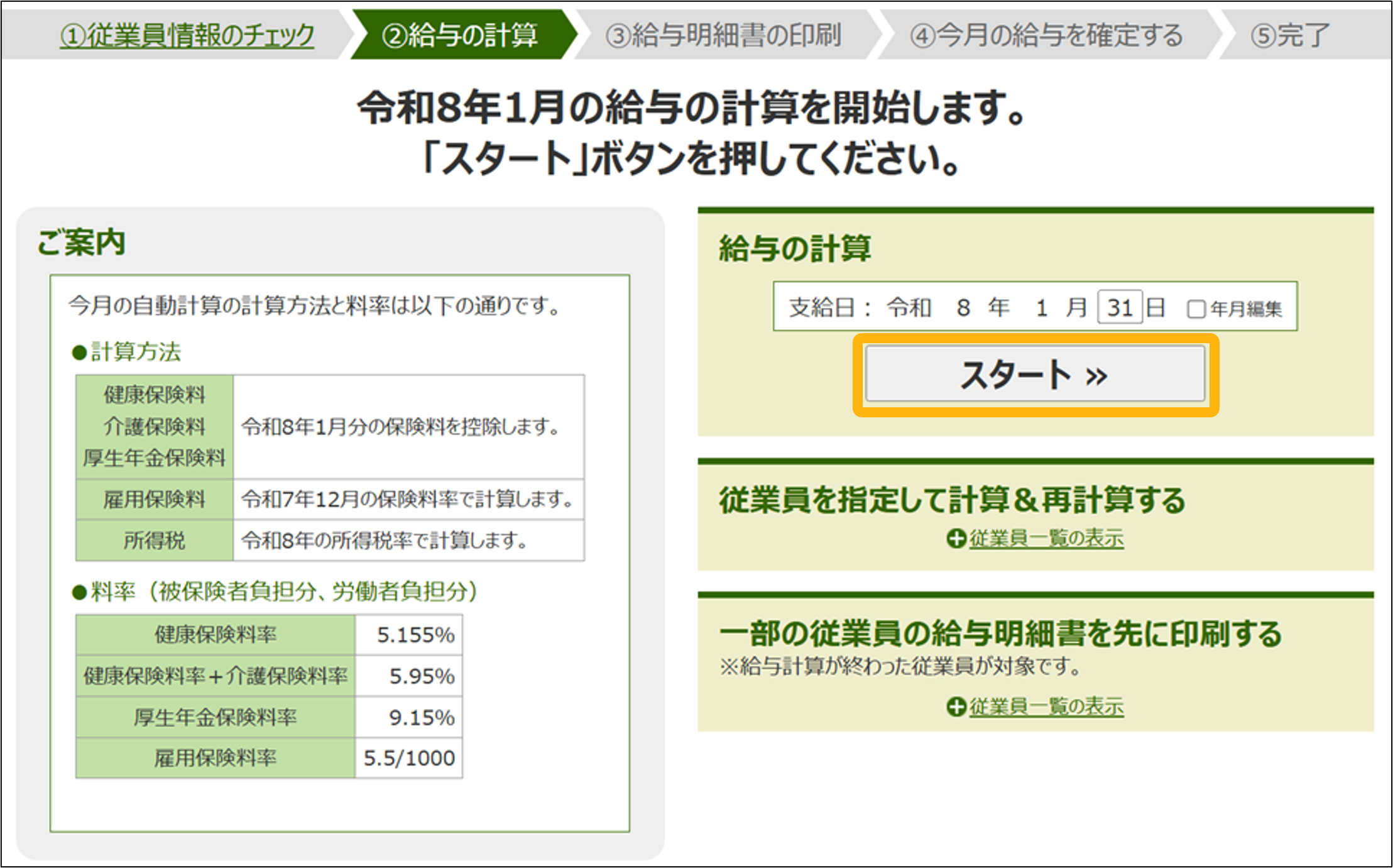 開始月の給与計算をします。