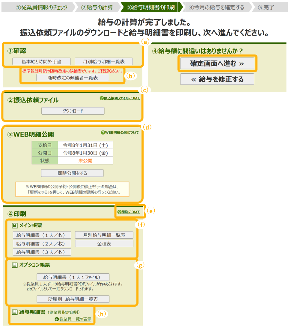 ③従業員を確認し、「次の手順へ進む」をクリック