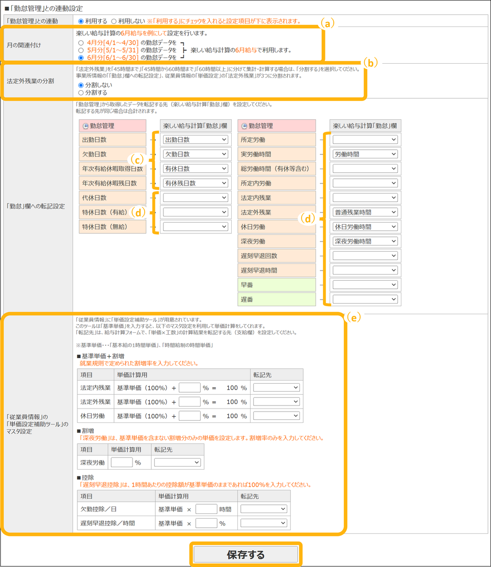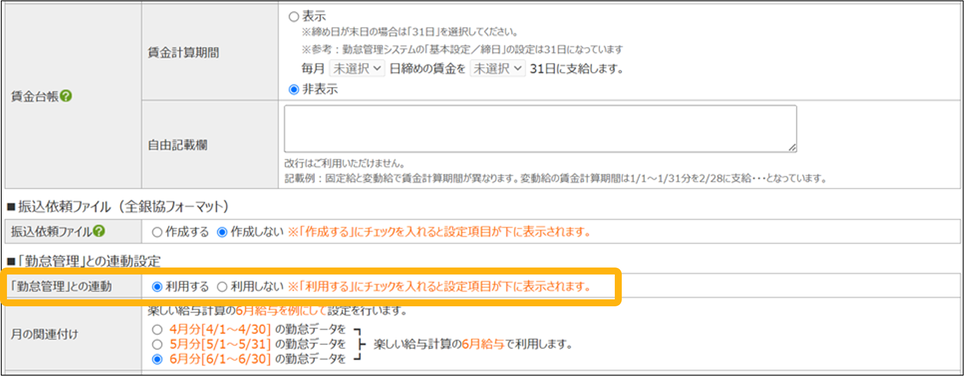 楽しい給与計算と勤怠管理の連動設定をします。