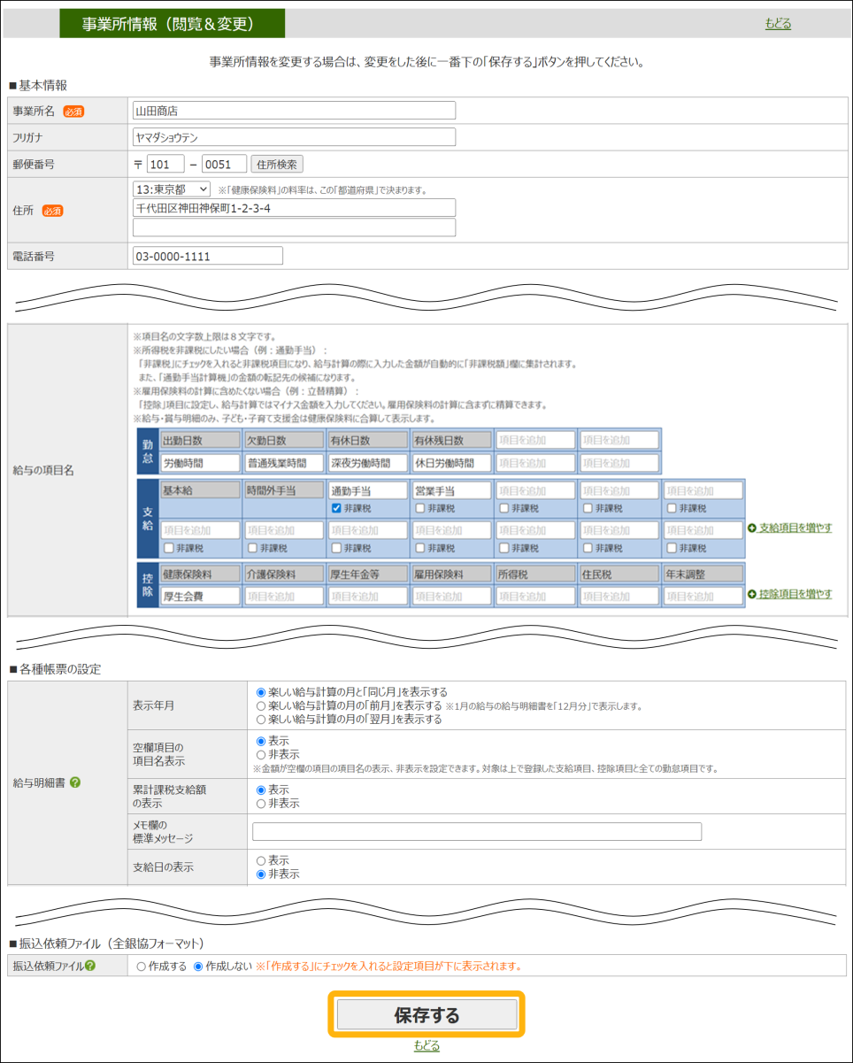 ⑤必要な項目を確認・修正し、「保存する」をクリック