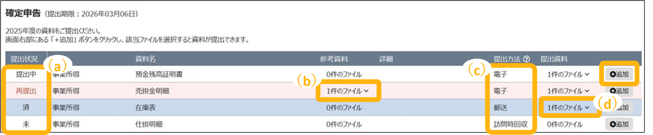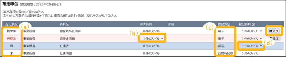 提出方法が「電子」の場合のみ資料を追加・削除できます。