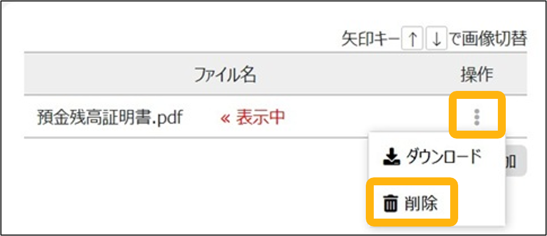クリックすると、追加した資料の確認や削除、ダウンロードができます。