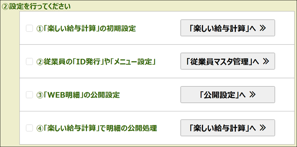従業員マスタ管理の初期設定を行ってください。詳細は、従業員マスタ管理の初期設定をご覧ください。
