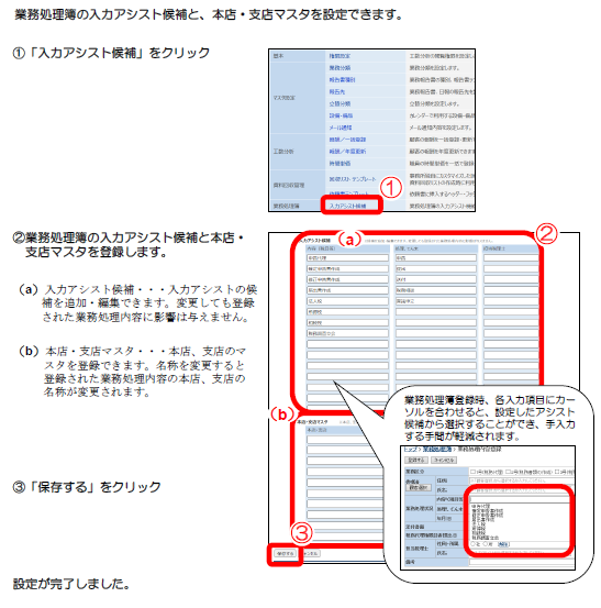 HOME よくあるご質問 業務処理簿 入力アシスト 業務処理簿の入力アシストを増やすには? 業務処理簿の入力アシストについてのよくあるご質問 業務処理簿の入力アシストを増やすには? 以下の通りです。 0人の方の参考になっています。 この質問・回答は参考になりましたか? ご回答ありがとうございます はい いいえ よろしければ「いいえ」の理由をお聞かせください。今後の改善のため、具体的な理由を以下のコメント欄にご記入ください。※ご質問をいただいても個別での回答はできかねますのでご了承ください。 回答の内容がわかりにくい リンク先のサイトの内容がわかりにくい その他 よくあるご質問TOPへ お問い合わせはこちら 移転、事務所名変更などの情報変更もこちらからご依頼ください。 お問い合わせはこちら 情報変更依頼はこちら よくあるご質問 随時更新中! 詳しくみる 料金表 申込 契約情報変更