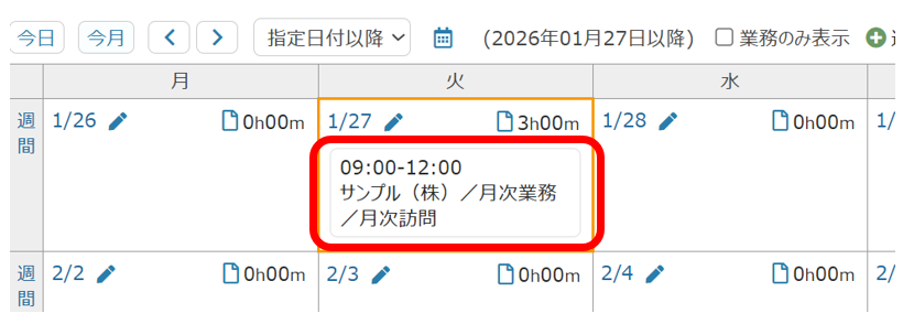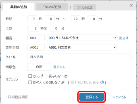 ③予定の登録が完了しました。