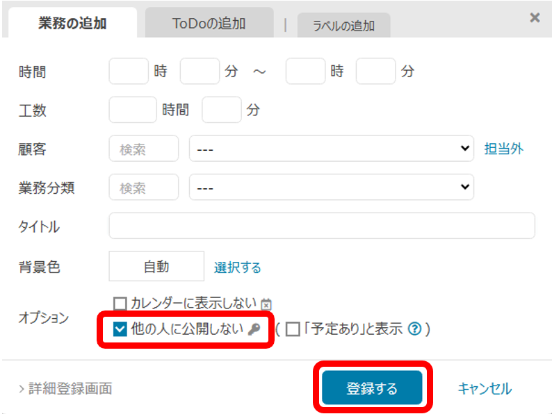 自分には見えてほかの人には見えないような予定を登録することはできますか?