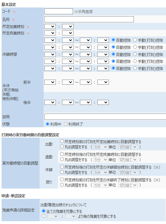 ⑤勤務形態通り入力し、「登録する」をクリック