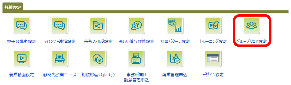 ②各種設定内の「グループウェア設定」をクリック