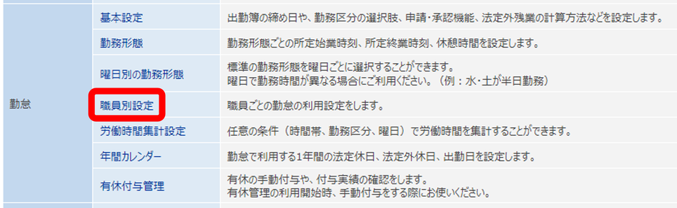 ③勤怠内の「職員別設定」をクリック