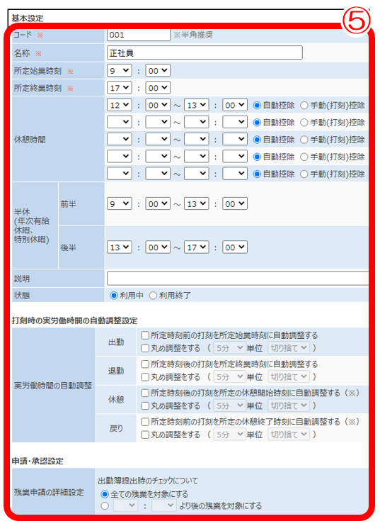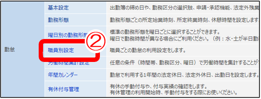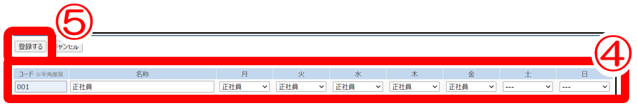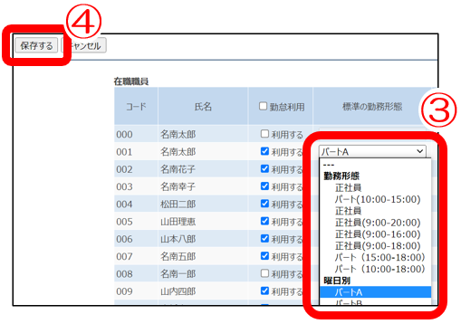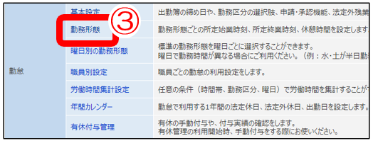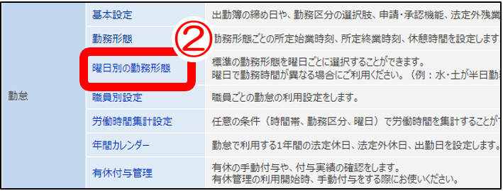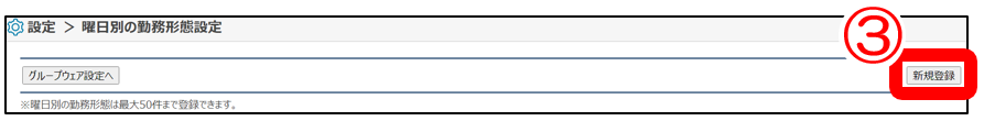③標準の勤務形態で、曜日別の勤務形態を選択
