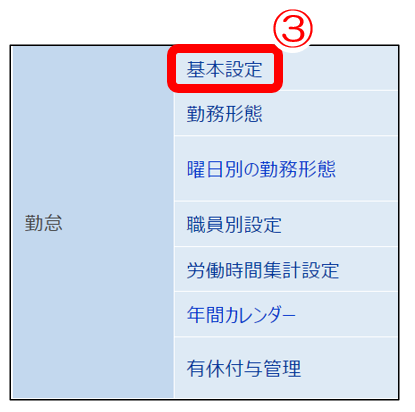 ④「労働時間計算設定」にて「変形労働時間制」の「利用設定」の横のチェックをいれていただく