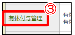 ③「有休付与管理」をクリック