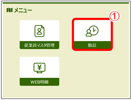 ①「勤怠」をクリック