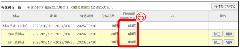 有給/修正/編集/変更/時間休/時間給