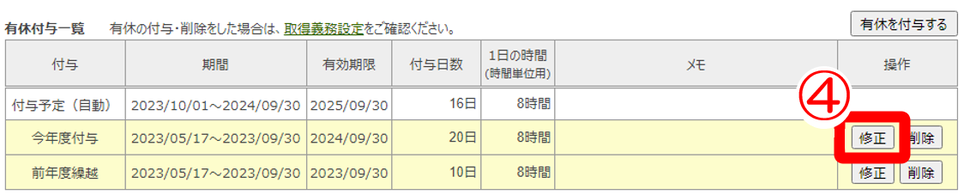 既に設定した有休の期間や付与日数を修正することはできますか?