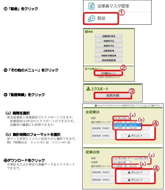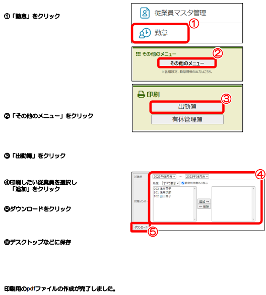 出勤簿の情報をCSVでダウンロードしたり、紙で印刷したりできますか?