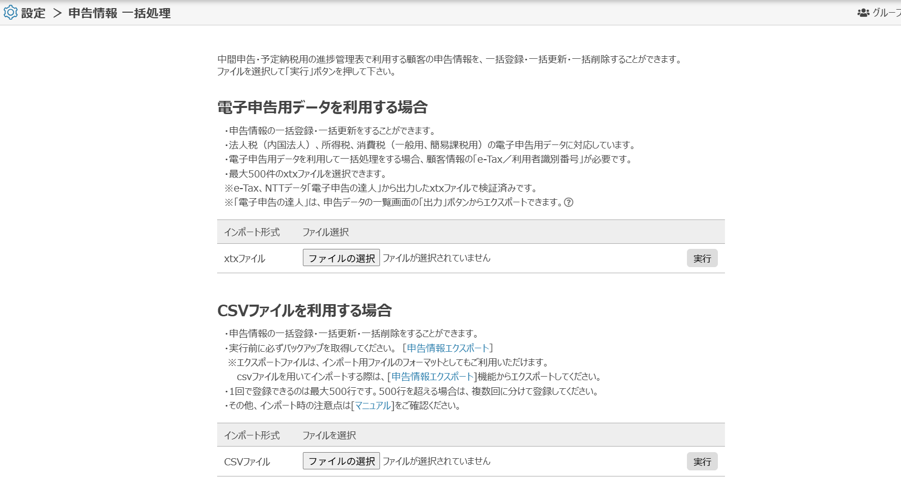 申告情報の一括処理はできますか?