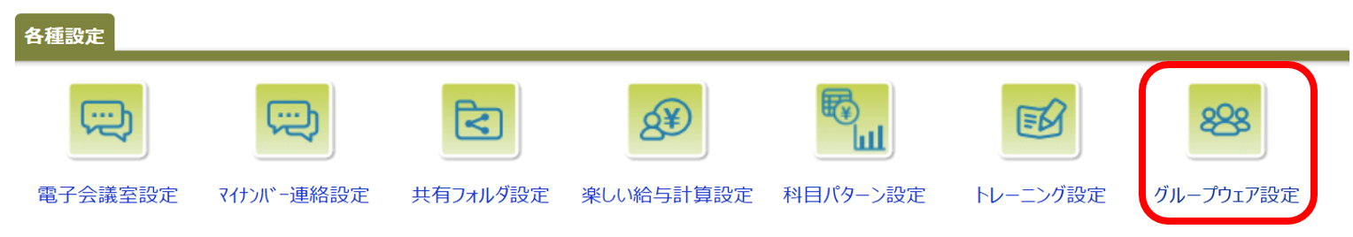 ①画面右上歯車マーク>グループウェア設定をクリック