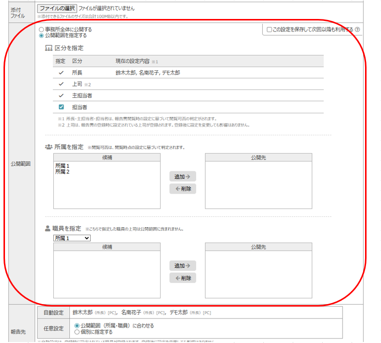 1)「公開範囲」機能を利用するかどうかを設定します。