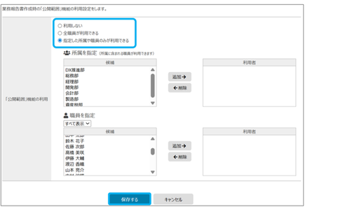 ②利用する「公開範囲」を選択し、「保存する」をクリック
