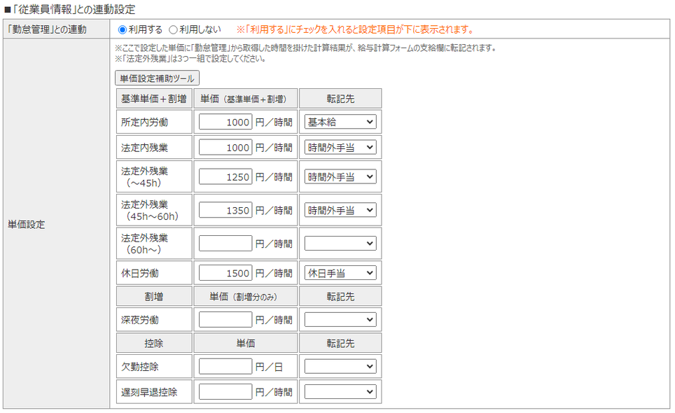 ③■「勤怠管理」との連動設定の「勤怠管理」との連動の「利用する」にチェック