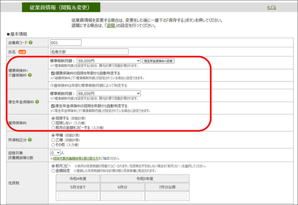 社会保険料(健康保険、介護保険、厚生年金保険、雇用保険)を自動計算することはできますか?