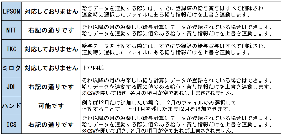 年末調整ソフトにすでに年の途中までの給与データが入っています。すでに入ってる給与データを消さずに、それ以降の給与を追加で連動できますか?