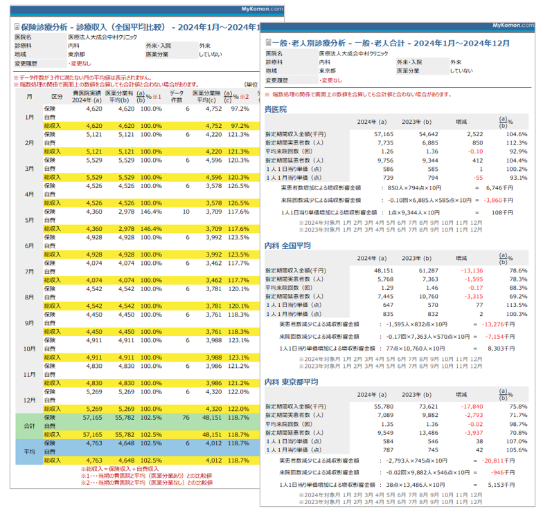 一般企業と同様に、医院の収入である診療報酬を分析することができます。