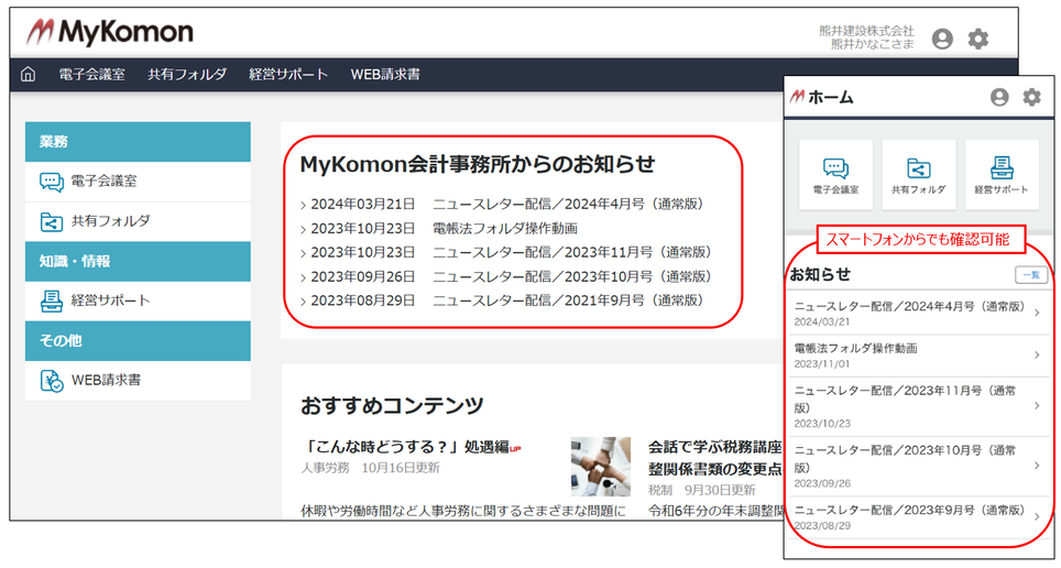 顧客用にMyKomonIDを発行することで、専用サイトとして活用できます。