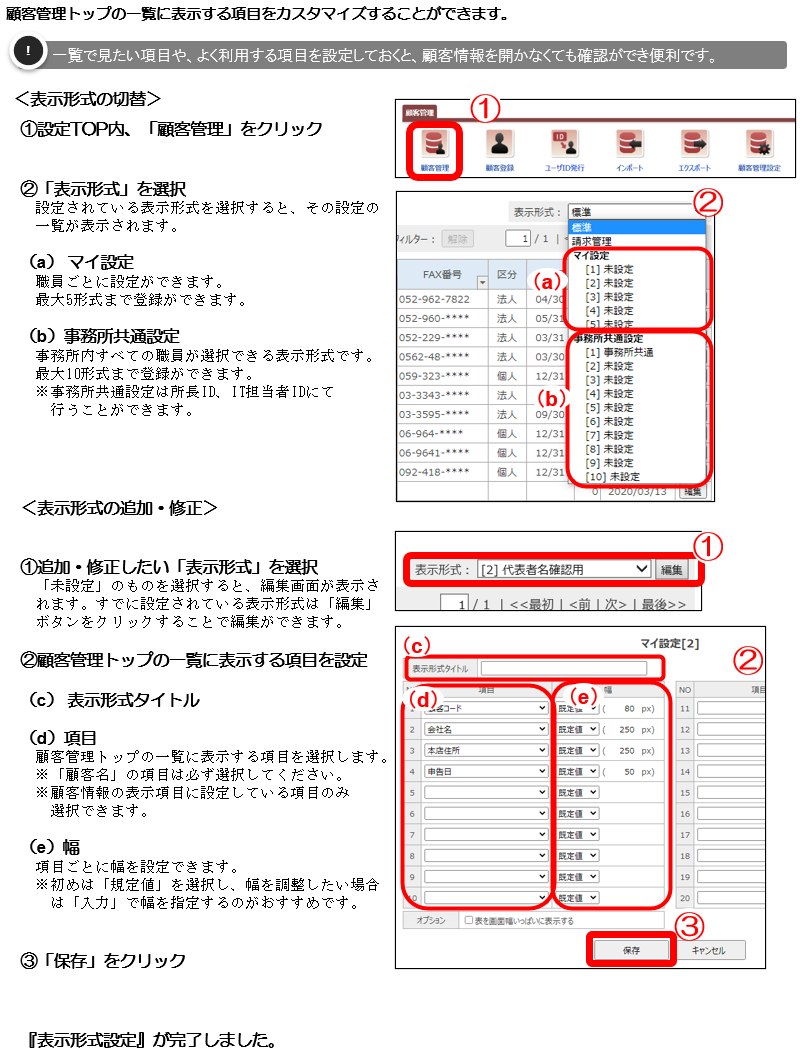 顧客一覧で表示する項目をカスタマイズすることはできますか?